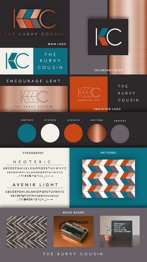 The Kurvy Cousin is a branded YouTuber who focuses on body positivity. This bright and though provoking brand is meant to serve professions from all walk of life and genders as they try to navigate the ups and downs of bariatric surgery. We created a cohesive brand strategy, logo, variations, favicons, and social media package for this client.